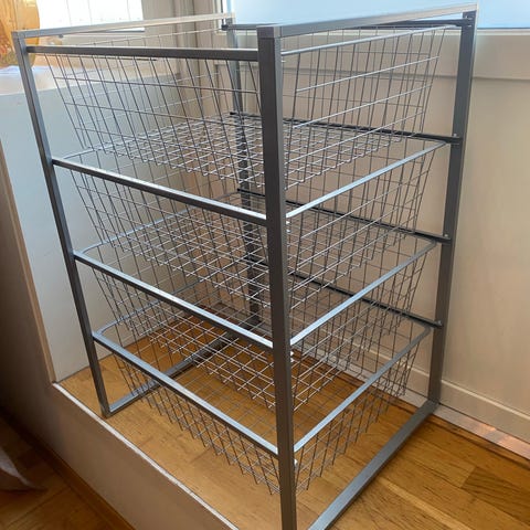 4 stk Lilla string hyller fra søstrene grene og 2 stk plexi glass hylle fra IKEA