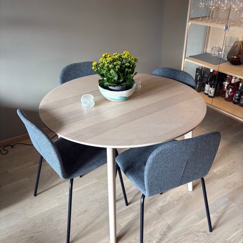 Pent brukt spisebord Ø 120 cm med inkl 1 ileggsplate