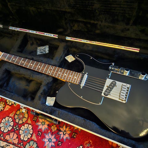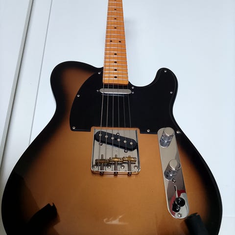 American Original 50s Telecaster Butterschotch blonde. Produsert i 2020. Strøken tilstand. Satt opp med D'Addario Extra-Super XL 010-046. Kun brukt i hjemmestudio, temperert med luftfukter.