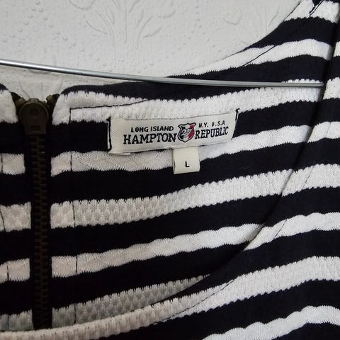 KappAhl lett kjole for dame i størrelse L. Kjolen er laget i polyester og har et flerfarget blomsterprint med hovedtoner i blått og fersken/brunt. Modellen har lange ermer, V-utringning med knappelukking foran og lett rynket liv som gir et fallende skjørt. Ytterstoffet er lett og transparent, med ensfarget blå underkjole.