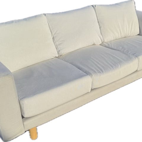 3 seter sofa, lys beige. Alle puter kan snus, så du kan velge med eller uten mønster. Se bilder.