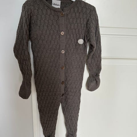 Lillelam heldress i ull, størrelse 68. Heldressen har lange ermer og ben, og lukkes med trykknapper foran. Materiale i ull som egner seg godt som innerste eller mellomste lag til baby. Passer både til hverdagsbruk inne og som lag under yttertøy ute.