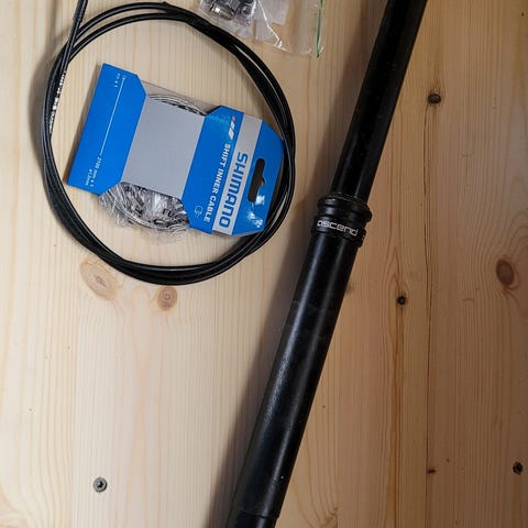 Pent brukt OneUp Components OneEighty senkepinne med 180 mm vandring og 30,9 mm diameter. Ingen skader, bare litt slitasje på den delen som er nedi ramma.