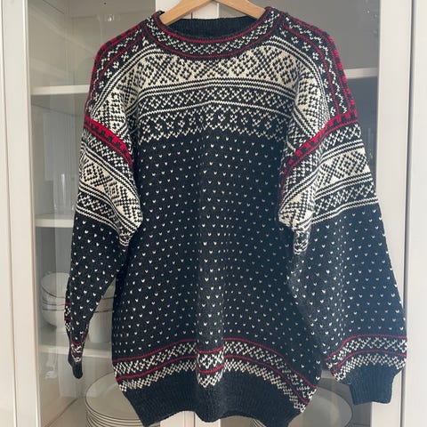 Håndstrikket ull genser Setesdal. Unisex retro norsk