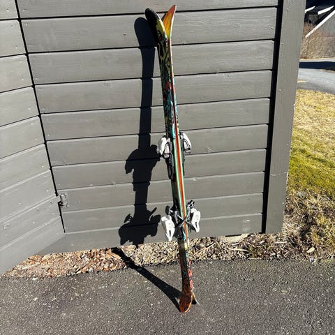 Line Tom Wallisch Shorty twintip ski i lengde 139 cm. Skiene har mål 97 mm i tupp, 72 mm i midje og 93 mm i bakkant. Skia selges for 1000kr og støvlene selges for 700kr Farge hovedsakelig svart med blå og rosa detaljer. Leveres med monterte alpinbindinger. På bildene vises også et par svarte alpinstøvler fra Head med fire spenner, selges separat eller som pakke!