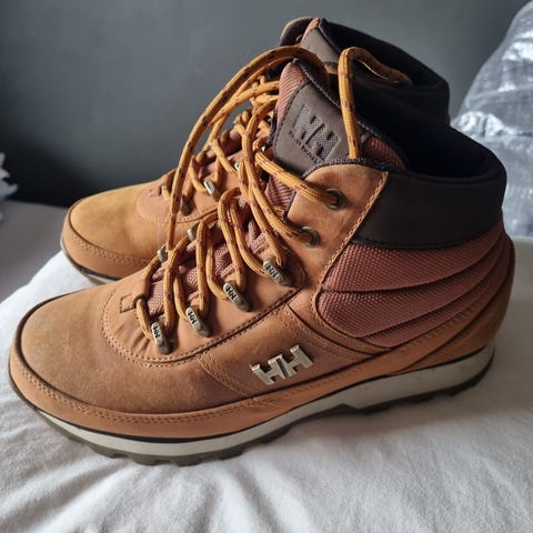Helly Hansen skoletter i størrelse 38. Støvlene er i brun farge med snøring foran og kraftig yttersåle med grovt mønster for godt grep. Overdelen er i syntetisk materiale, fôret innside og tekstilinnersåle. Passer til hverdagsbruk og tur i variert terreng.