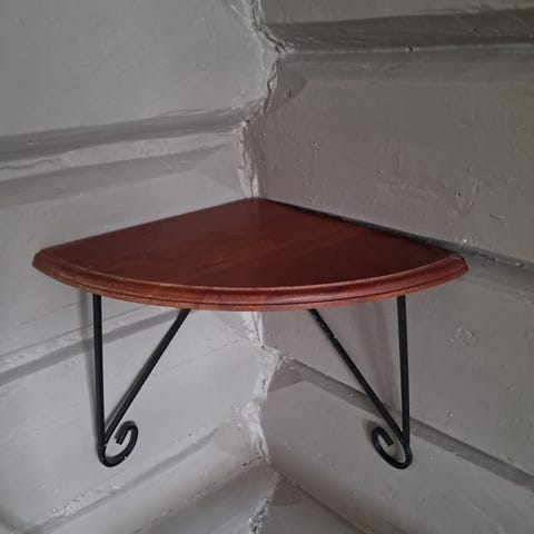 Bakveggen er fjernet så panel/ tapet synes gjennom hyllen