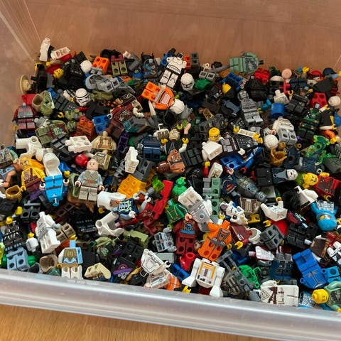 LEGO Star Wars byggesett og minifigurer blandet lot. Inneholder ulike romskip, kjøretøy og figurer fra Star Wars-temaet, samt diverse andre LEGO-klosser og minifigurer. Delene er blandet i en oppbevaringsboks, og sett kan være ufullstendige. Egnet for bygging, lek eller som reservedeler til eksisterende LEGO Star Wars-samlinger. Ashoka tano’s shuttle og luke mot dark troopers kommer ikke med figurer.
