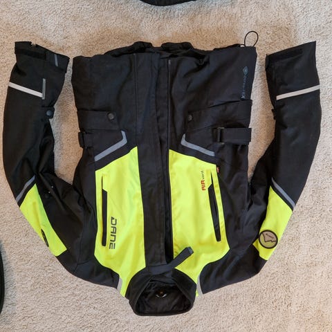 Strøken jakke med innerfor og polstringer. Vanntett og godt synlig. Ny pris ca. 3600,-