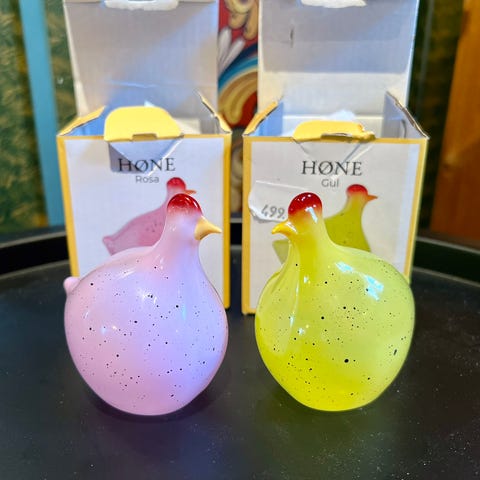 Villeroy & Boch påskedekor høner glass hvit og grønn