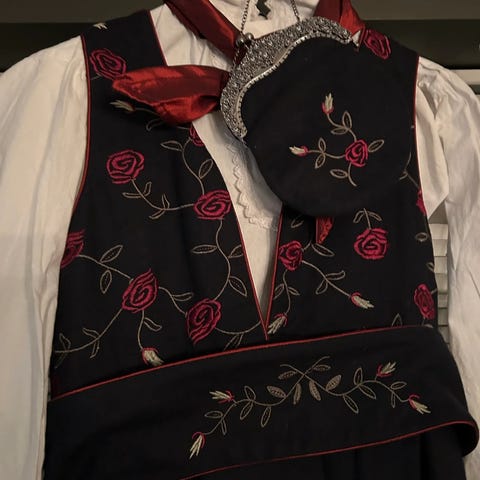 Veldig pent brukt festdrakt med skjorte og hårbøyle selges samlet for 700 kr. Str er 158-164 Dyr og røykfri hus kan sendes
