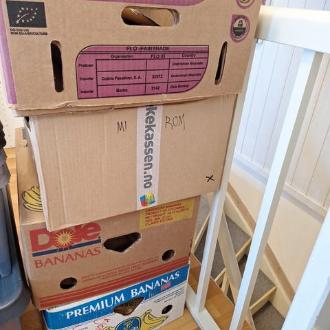 Ger bort. Banankasser og silkepapir. Må hentes.