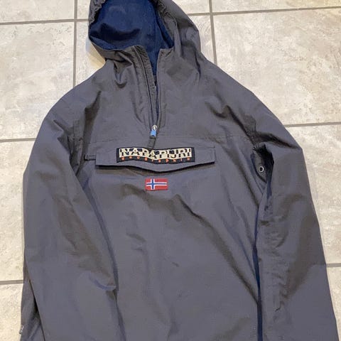 Napapijri jakke, størrelse 170. Tilsvarer størrelse barn, 14-16 år ca. Noen bruksmerker, blant annet litt flekker/misfarging på ermet (se bilde).