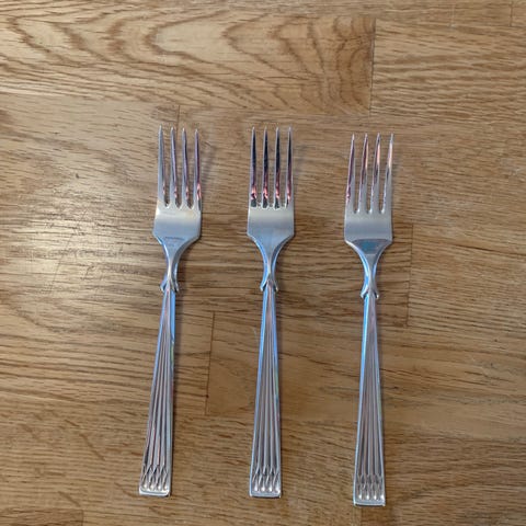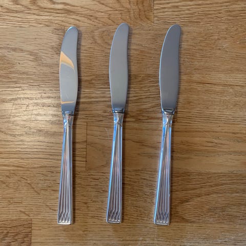 Kniv er 20 cm og gaffel er 18 cm.