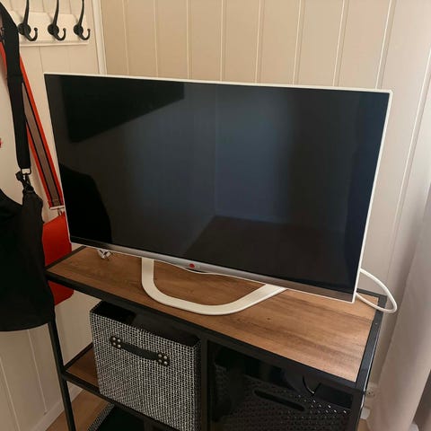 LG TV i svart farge 42 tommer. Klassisk flatskjerm-TV med bordstativ og tilhørende fjernkontroll, egnet for bruk i stue, soverom eller som ekstra TV. Tilkoblinger og detaljerte spesifikasjoner fremgår vanligvis på merkingen bak på apparatet eller i bruksanvisningen.
