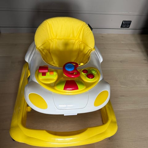 Gåstol/gåbil fra Yngri (Ubbe) i gul og hvit. Lite brukt.
