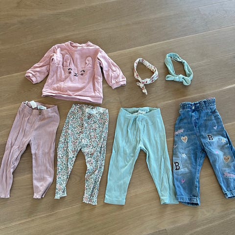 Klespakke str 62, en vårjakke, 2 bukse4, en ola shorts og en kjole fra newbie