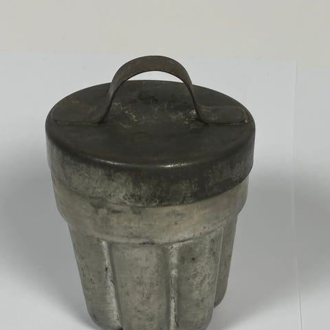 Dette er et vintage grytelodd eller kokelodd, som ble brukt til å holde lokk nede på eldre elektriske komfyrer for å forkorte koketiden og spare strøm.