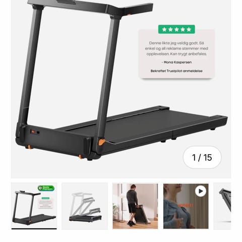 Walkpad PRO tredemølle med maksimal hastighet på 12 km/t. Modellen er sammenleggbar og har et kompakt design som egner seg for innendørs bruk, for eksempel i hjem eller på kontor. Løpe- og gåflaten er utført i mørk farge, med enkel betjeningsenhet foran. Tredemøllen er tilpasset gange og lett løping, og kan enkelt flyttes og oppbevares når den ikke er i bruk.