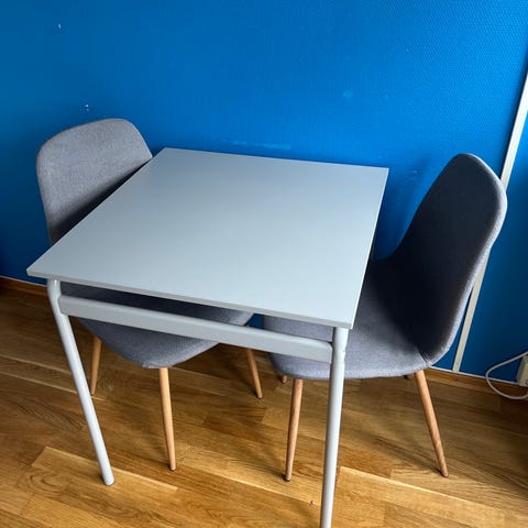 Selger et spisebord fra IKEA som passer fint i et kjøkken av mindre størrelse. Spisebordet er helt hvitt, men har en folie på topplaten som kan tas av.