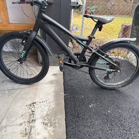 Utstyrt med skjermer og refleks under setet. Passer til barn som skal over fra mindre barnesykkel til større juniorsykkel med gir.