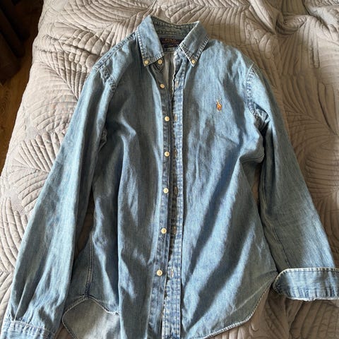 Polo Ralph Lauren denimskjorte i en skikkelig fin blå vask. Dette er en sånn skjorte som bare sitter helt riktig og ser bra ut uansett hva du kombinerer den med. Veldig clean, men fortsatt nok detaljer til at den skiller seg litt ut.