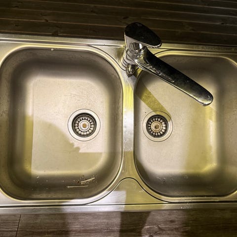 Kjøkkenkum i rustfritt stål med tre kummer, to store og én mindre i midten. Leveres med ettgreps kjøkkenbatteri i krom utførelse montert på kummen. Passer for innfelling i benkeplate på kjøkken. Kummen har avløp i de to ytterste kummene og oppvaskkum i midten. Materiale i rustfritt stål gjør den egnet for daglig bruk på kjøkken.