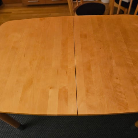 4 stoler og spisebord med ileggs plate 165/225 langt