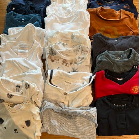 30 plagg - 10 kr. pr. plagg. Inkluderer noe ull. Pent brukt, men flekker kan forekomme.