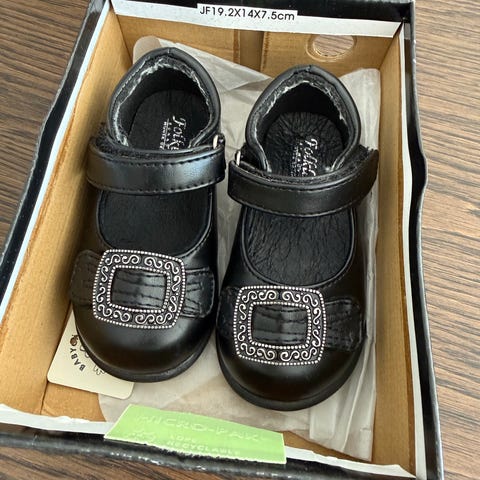 Pent brukte bunadssko i størrelse 21. Litt slitasje på tåen. Borrelås foran.