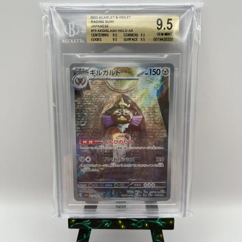 Pokémon Wailord samlekort gradert av Beckett til 9.5. Kortet er innkapslet i hardplast-slab med Beckett-etikett øverst som viser delkarakterer for sentering, hjørner, kanter og overflate. Motiv av Wailord med holografisk bakgrunn. Egner seg som samlerobjekt for Pokémon-kortsamlere og til oppbevaring i graderte kortkasser eller utstilling.