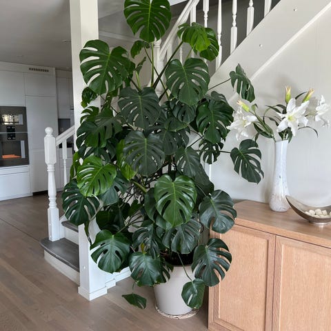 Selger en stor monstera deliciosa potteplante. Lettstelt, trenger moderat vanning og trives i indirekte lys.