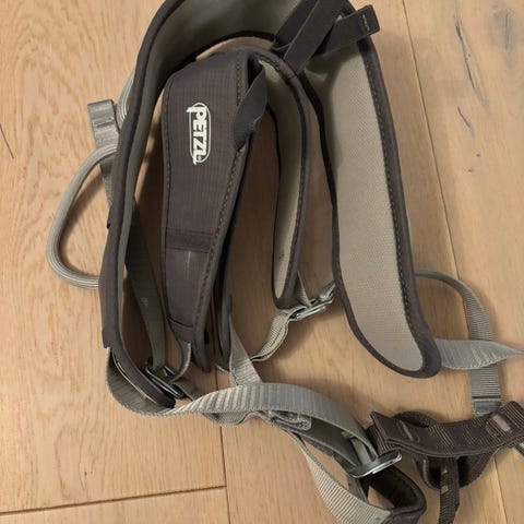 Blitt brukt mest til sikring av barn. Noe brukt til lett klatring innendørs, men fremstår omtrent som ny.