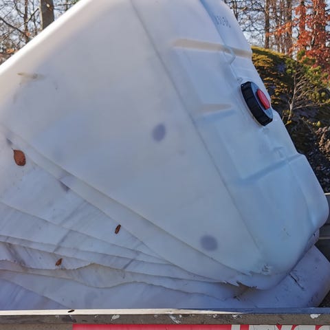 Selger Sæplast Nordic 700 container (ca. 755 liter) billig. Meget robuste og isolerte kar i næringsmiddelgodkjent plast. Karet er 155cm lang, 108cm bred og 68.5 cm høy.