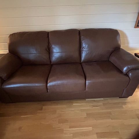 Pen lysegul skinnsofa til salgs, lite brukt