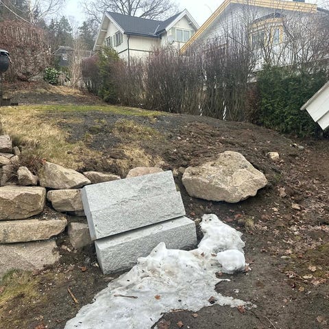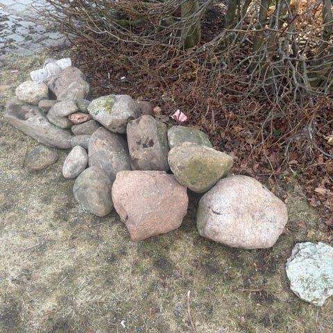 Stein til steingjerde, fyllmasse, dekor eller avgrensing gis bort mot henting.