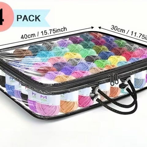 Har satt sammen en innholdsrik pakke med nyttig strikketilbehør i assorterte farger: