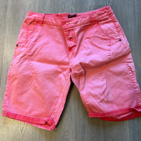 Eksklusive Jacob Cohën shorts til dame i flott korallrød farge. Klassisk og stilren modell med fine detaljer og høy kvalitet. Pent brukt og fremstår i god stand. Perfekte til sommer, ferie og hverdagsbruk.