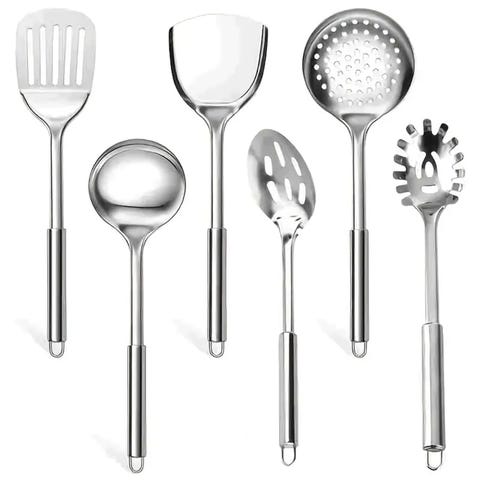 Kjøkkenredskapssett i rustfritt stål, 6 deler, matlagingsredskapssett.