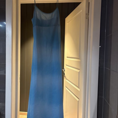 Vila festkjole for dame i størrelse M. Kjolen er grønn og laget av polyester. Modellen har 3/4 lange ermer og rund hals. Lengden går omtrent til kneet eller litt nedenfor, avhengig av høyde. Stoffet har en myk, lett glansfull overflate som gir et pent uttrykk til bruk ved ulike anledninger.