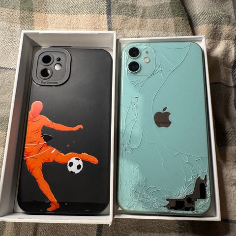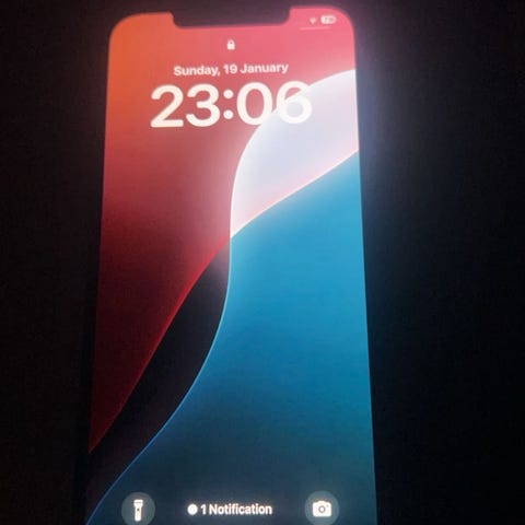 Apple iPhone mobiltelefon med 64 GB lagringskapasitet, noen pixelfeil. Batterikapasitet 92%