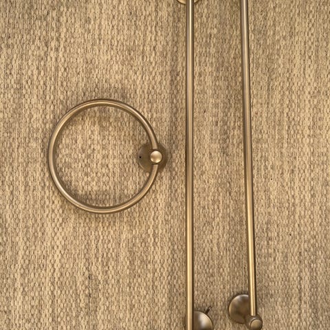 Vakker og klassisk håndklehylle som er et godt alternativ til en håndkletørker. Håndklehyllen har fire praktiske kroker på undersiden og er laget i ubehandlet polert messing, som vil mørkne naturlig over tid.