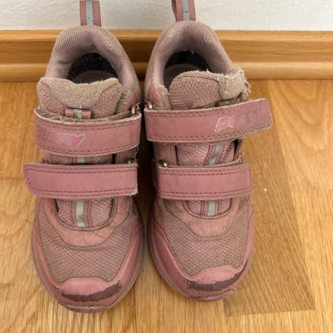 Fine, lette joggesko. Kan vaskes i maskin på 30grader. Noe bruksslitasje, brukt en sesong. Men fortsatt en del bruk igjen. Mangler en liten bit gummi under.