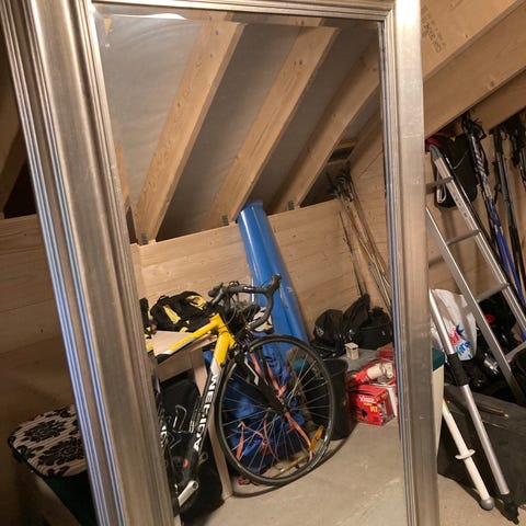 IKEA speil med bred sølvfarget ramme. Rektangulær form med markert, profilert kant rundt speilflaten. Passer til bruk i gang, soverom eller stue, enten hengende på vegg eller stående lent mot vegg, avhengig av oppheng og plassering. Egnet som helfigurspeil eller større veggspeil i hjemmet.