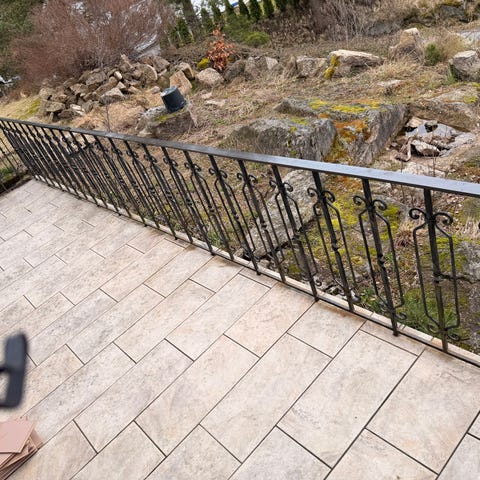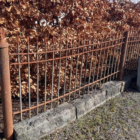 Gammelt gjerde i støpejern med en liten sving på enden.