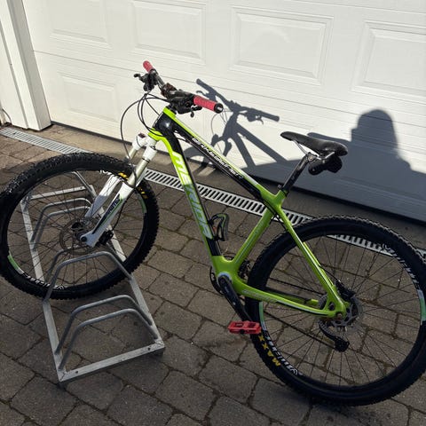 16’’ ramme og 26’’ hjul så passer best til yngre ungdom.