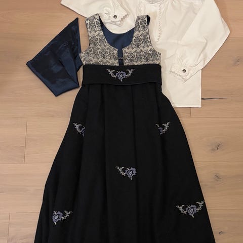 Veldig pent og lite brukt Maxemilia bunad 65%ull. Belte, sjerf og skjorte er inkludert i prisen. Skjorte er fra en annen merke. Kommer fra dyrefri og røykfri hus kan sendes Str 12