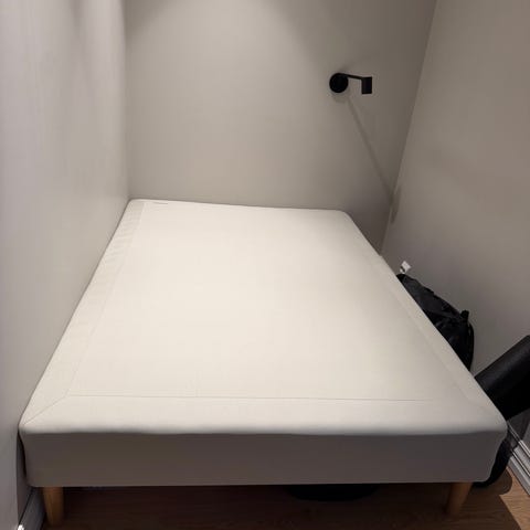 IKEA enkel rammemadrass (90x200cm) i god stand, selges pga flytting. Solid og enkel ramme som passer til smalt rom — må hentes i Ås. Ser helt ny ut, uten noen bruksmerker. Har god plass til oppbevaring under 🛏️