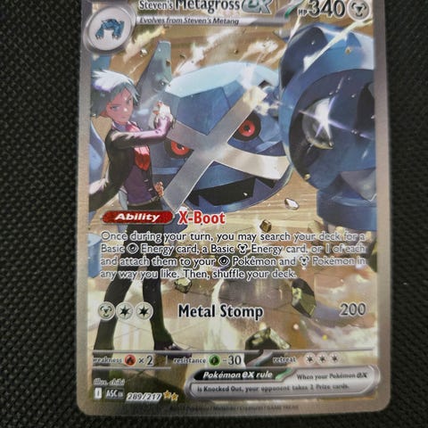 Selger Steven’s Metagross EX SIR #289 fra Ascended Heroes. Sleevet rett fra pakke.