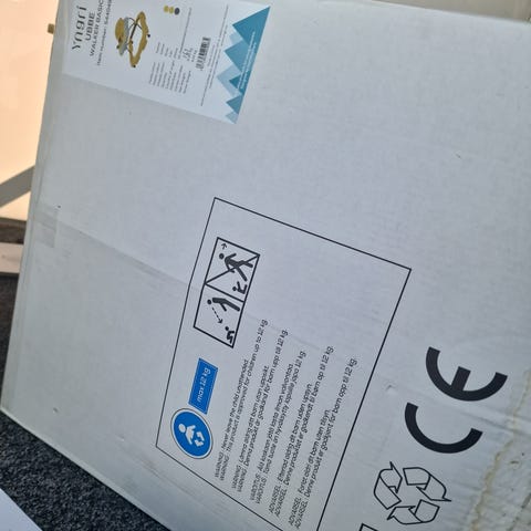 Selger en helt ny bakketrampoline i esken uåpnet. Mål: Ø396 xH26 xH180 cm